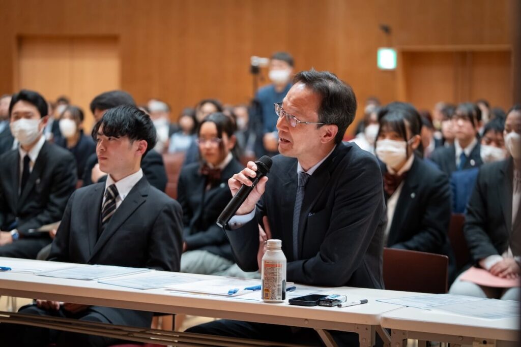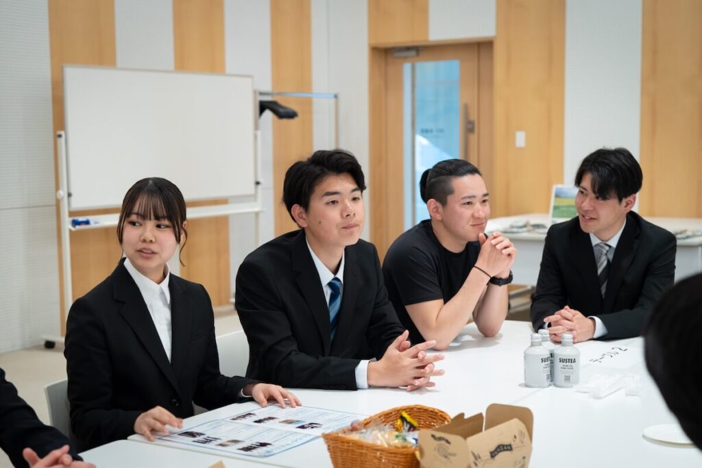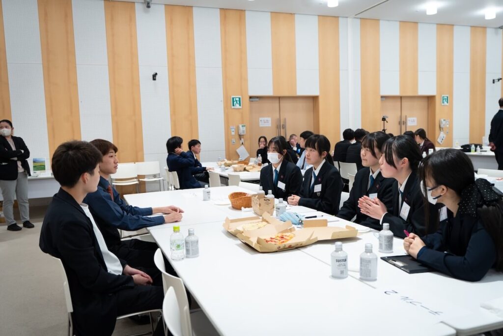 緊張から解放された高校生たちは、協賛企業の皆様と直接テーブルを囲み、社会人の視点からビジネスや地域課題へのリアルなフィードバックを受け取るなど、活発な意見交換が行われました。大人たちもまた、彼らの柔軟な発想に大きな刺激を受けていました。