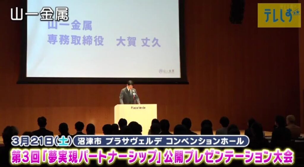 2026年3月21日(土)、山一金属が主催する『第3回 夢実現パートナーシップ 公開プレゼンテーション大会』を開催いたしました 。 本イベントは、次世代を担う高校生たちが自らの“叶えたい夢”や“地域課題の解決策”を形にし、地域社会に向けて発信する場です。長泉町・清水町・沼津市・三島市の後援に加え、当日はテレビや新聞の取材も入り、会場は大きな熱気に包まれました。